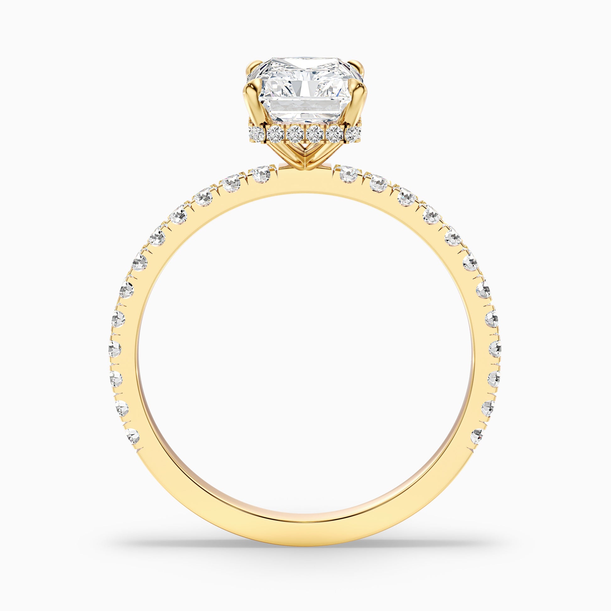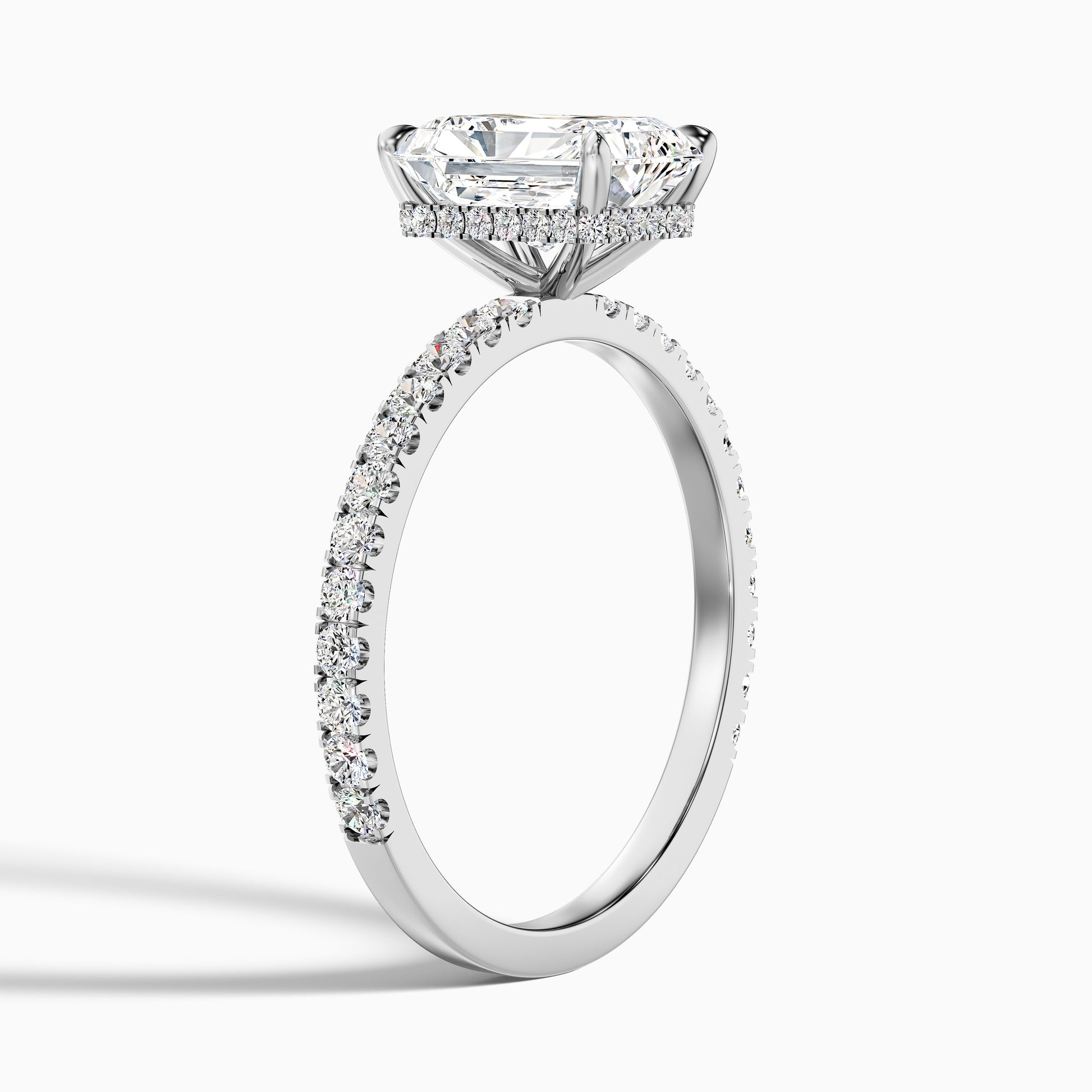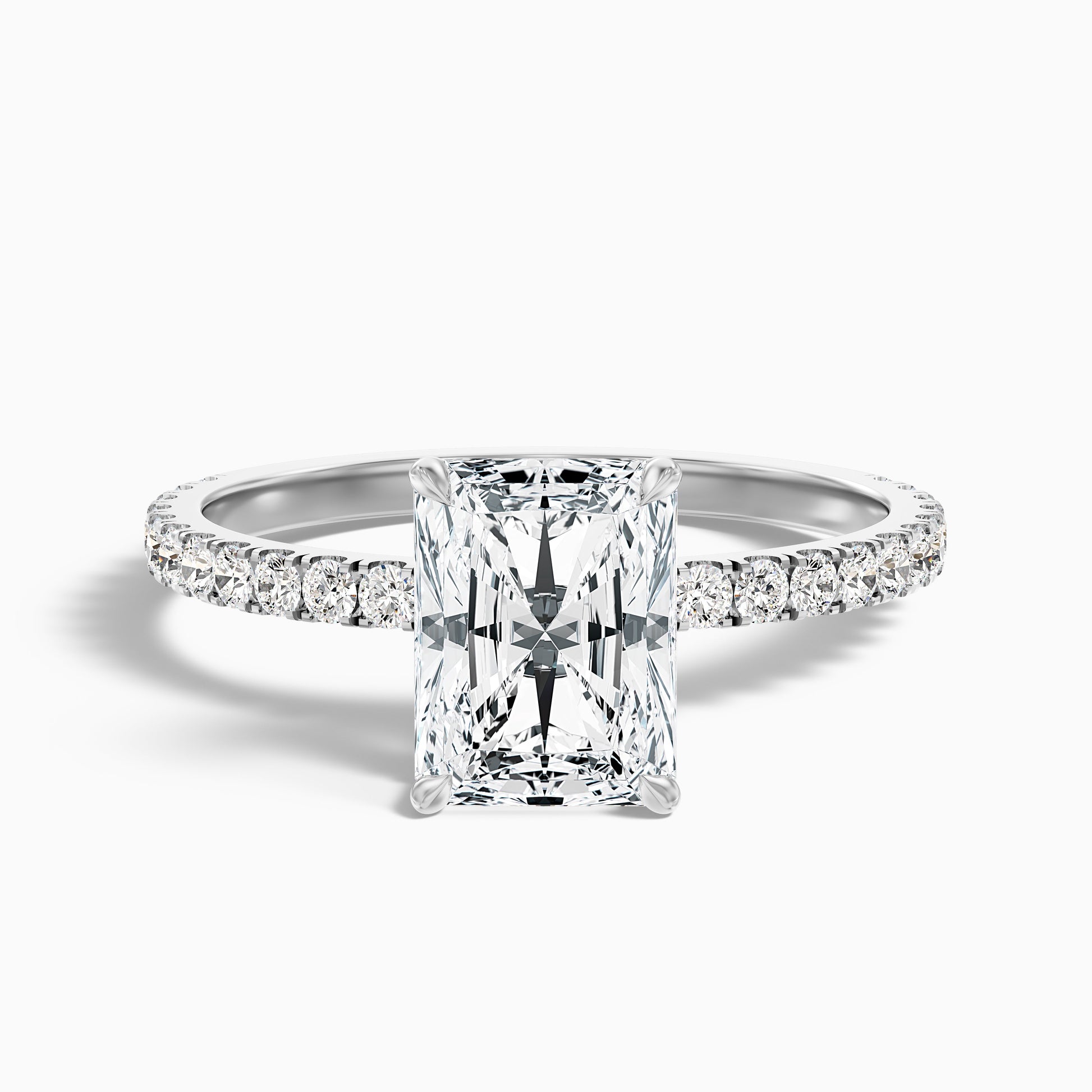 This radiant cut hidden halo pave lab grown diamond ring combines sparkle and detail. Features a brilliant radiant cut lab grown diamond with a hidden halo and shimmering pave band. Crafted in 925 silver, platinum, or 10k, 14k, 18k white, yellow, rose gold. Available in various carat sizes for a captivating look.