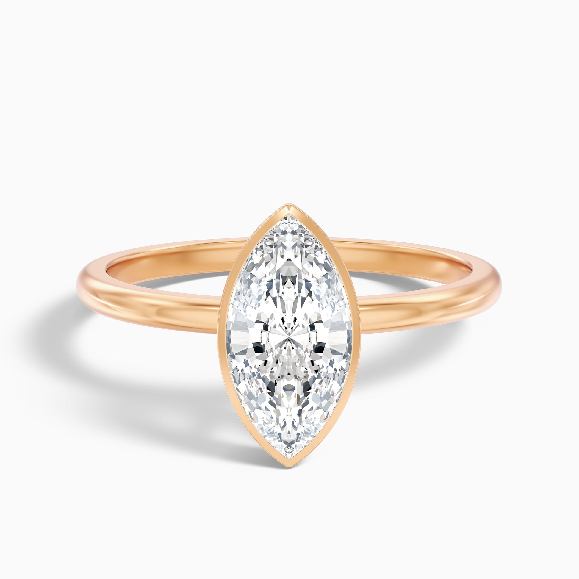Alondra Marquise Cut Bezel Set Solitaire Moissanite Diamond Ring