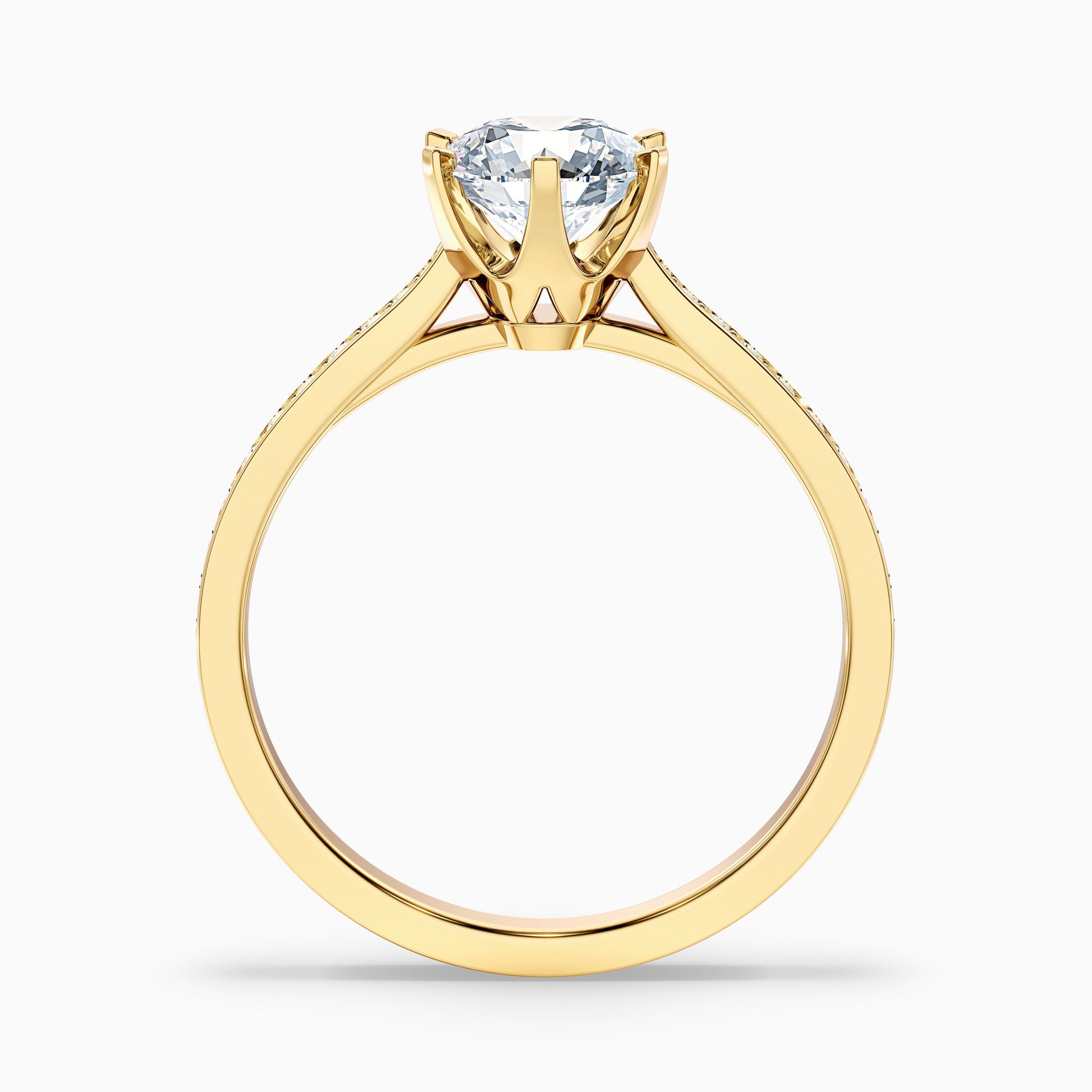 Find enduring beauty with this round side stone moissanite ring. Featuring a magnificent round moissanite enhanced by sparkling side stones. Crafted with precision, select from 925 silver, platinum, or 10k, 14k, or 18k white, yellow, or rose gold. Available in various carat sizes. A classic choice.