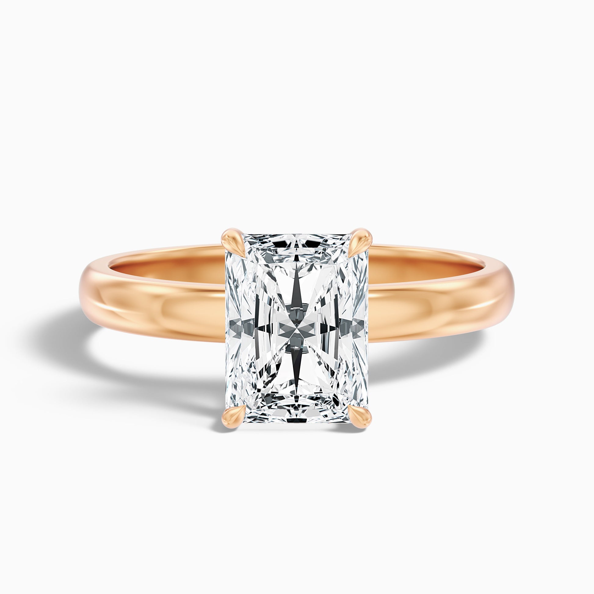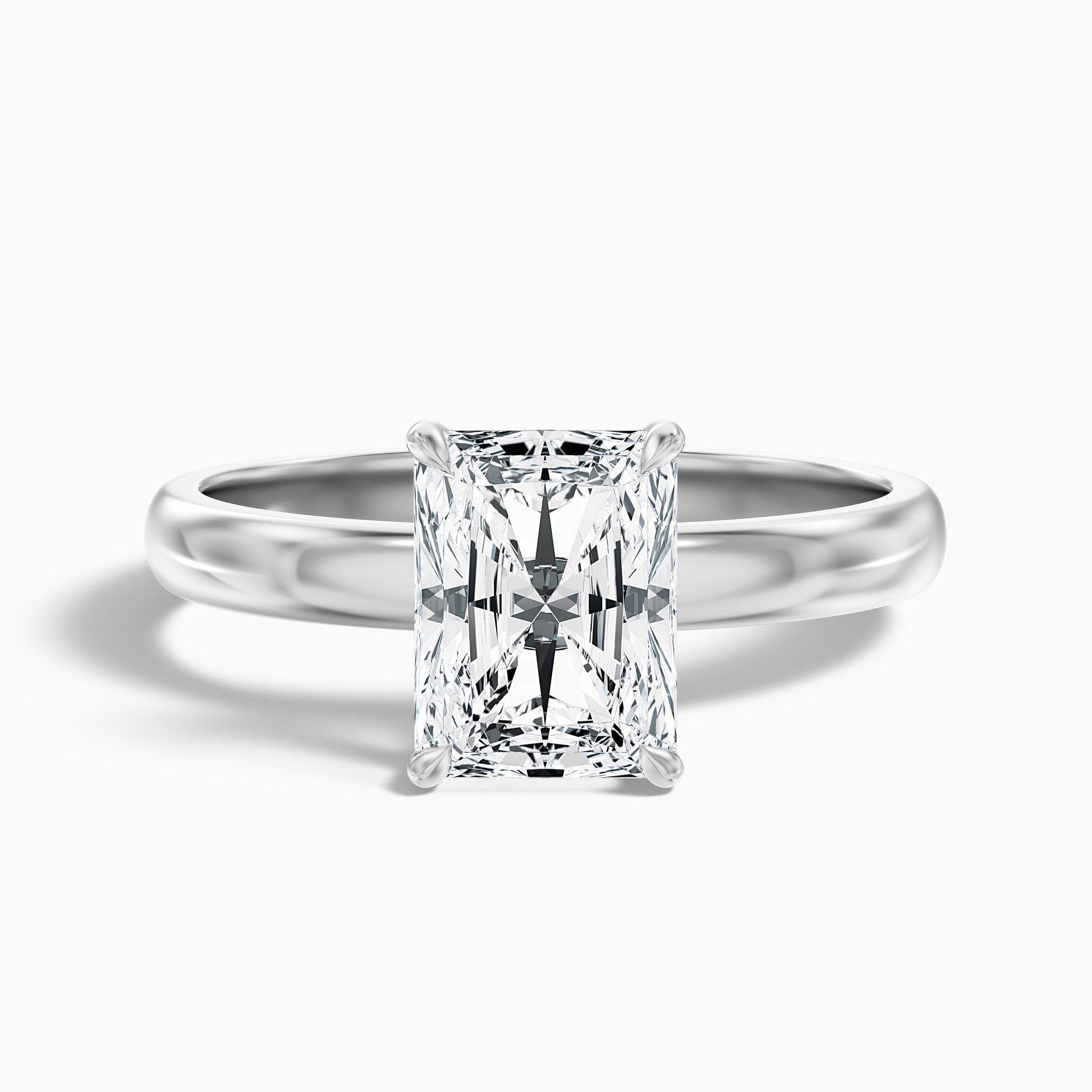 This radiant cut hidden halo moissanite ring offers a secret sparkle. Features a beautiful radiant cut moissanite with a subtle hidden halo beneath. Available in 925 silver, platinum, or 10k, 14k, or 18k white, yellow, or rose gold. Choose from various carat sizes for a ring with delightful detail.