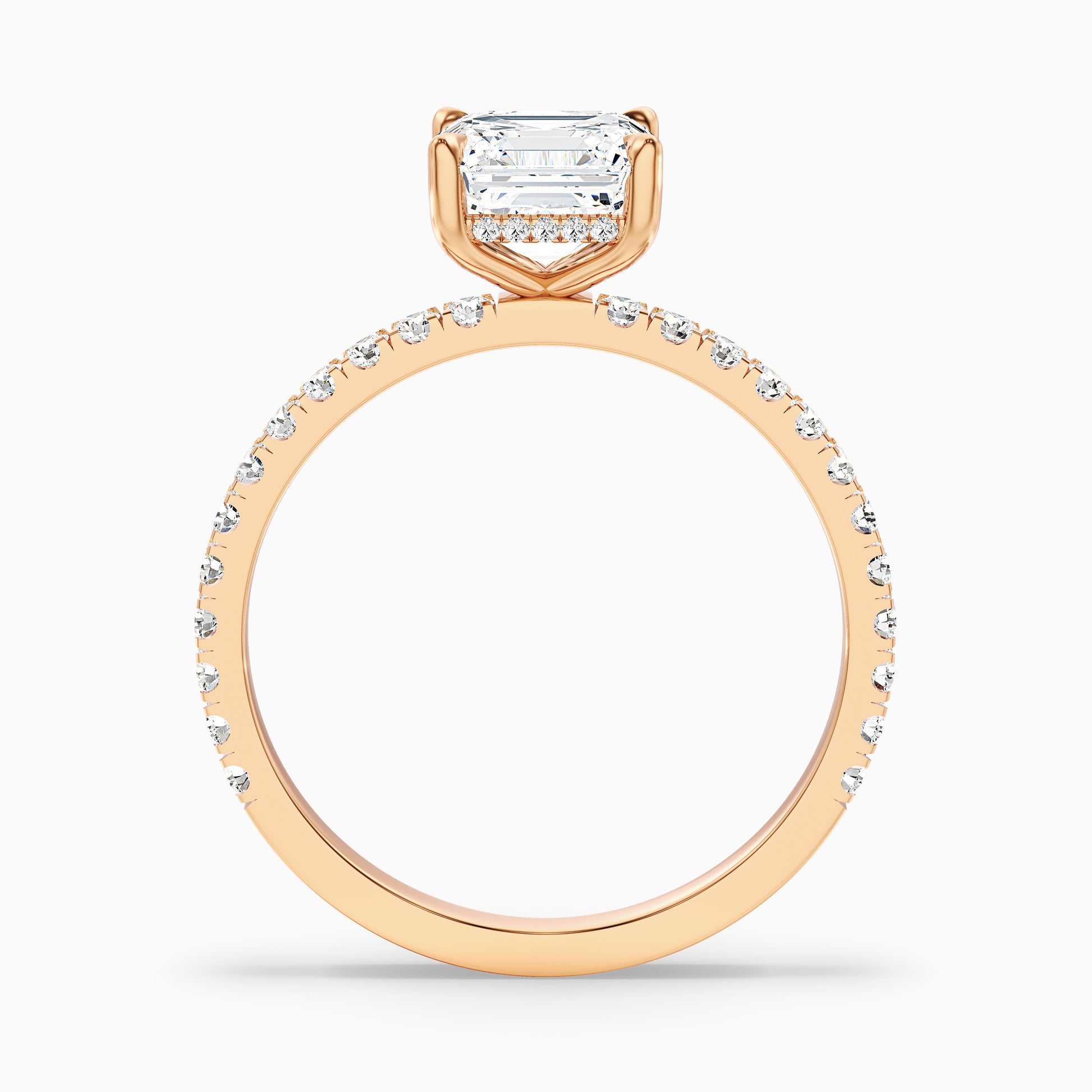This asscher cut hidden halo pave moissanite ring combines sparkle and detail. Features a beautiful asscher cut moissanite with a hidden halo and shimmering pave band. Crafted in 925 silver, platinum, or 10k, 14k, or 18k white, yellow, rose gold. Available in various carat sizes for a captivating ring.