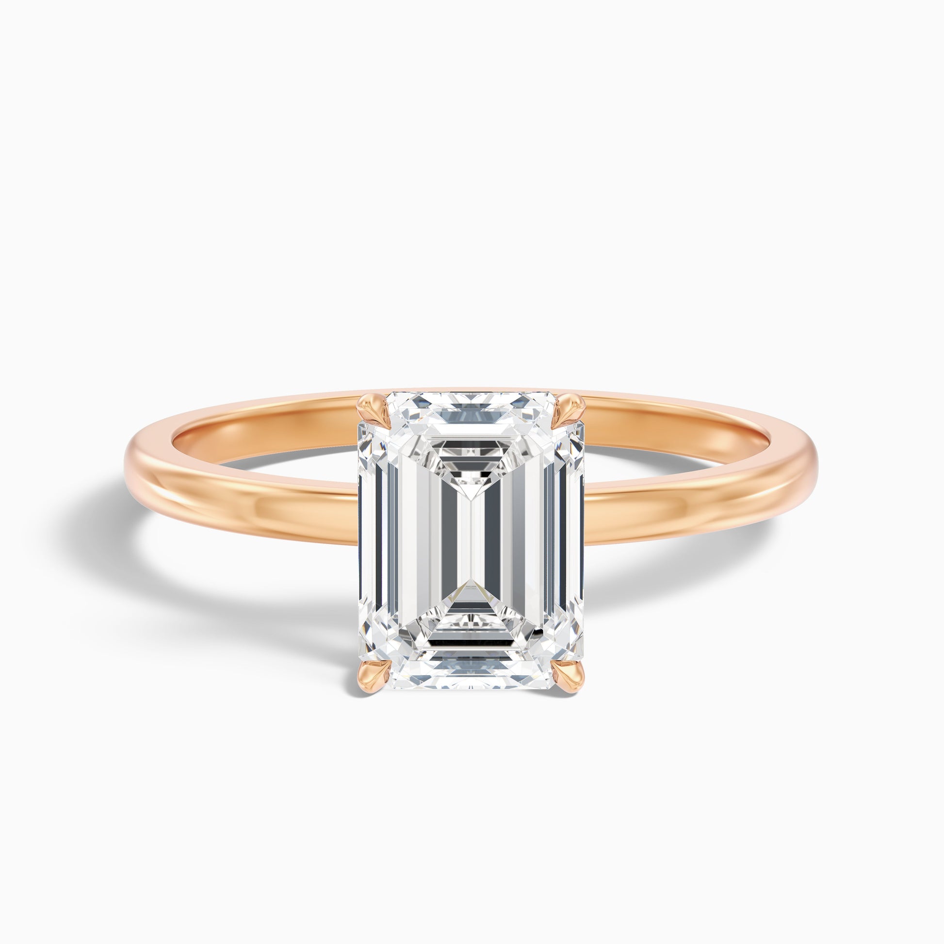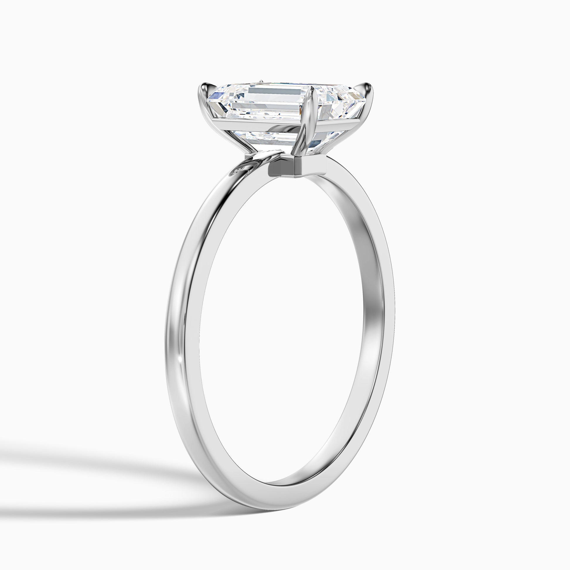 The Baileah emerald cut low profile moissanite diamond ring features a sleek step-cut center stone set in a smooth, close-to-the-finger mounting for a clean, minimalist look and snag-free comfort. Crafted in 10k, 14k, or 18k gold, sterling silver, and platinum, this ring emphasizes clarity and timeless sophistication.
