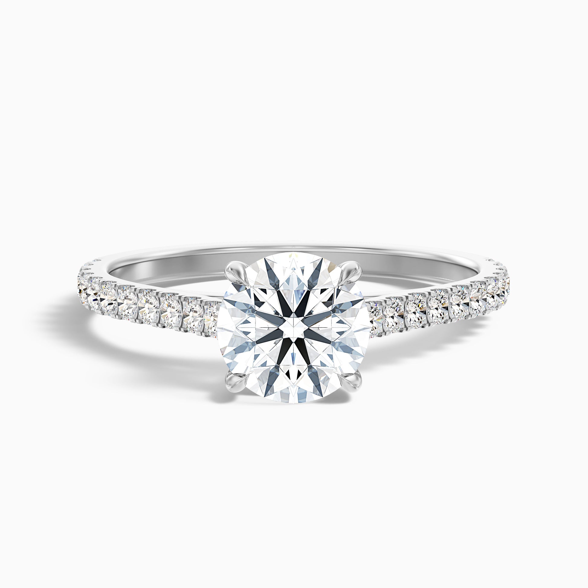 A beautiful round side stone moissanite ring. This design features a brilliant round moissanite complemented by sparkling side stones. Available in 925 silver, platinum, or 10k, 14k, or 18k white, yellow, or rose gold. Choose from various carat sizes for a ring that shines.