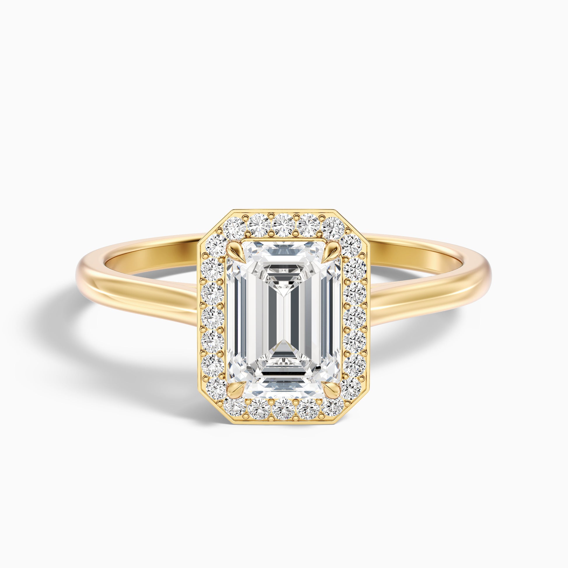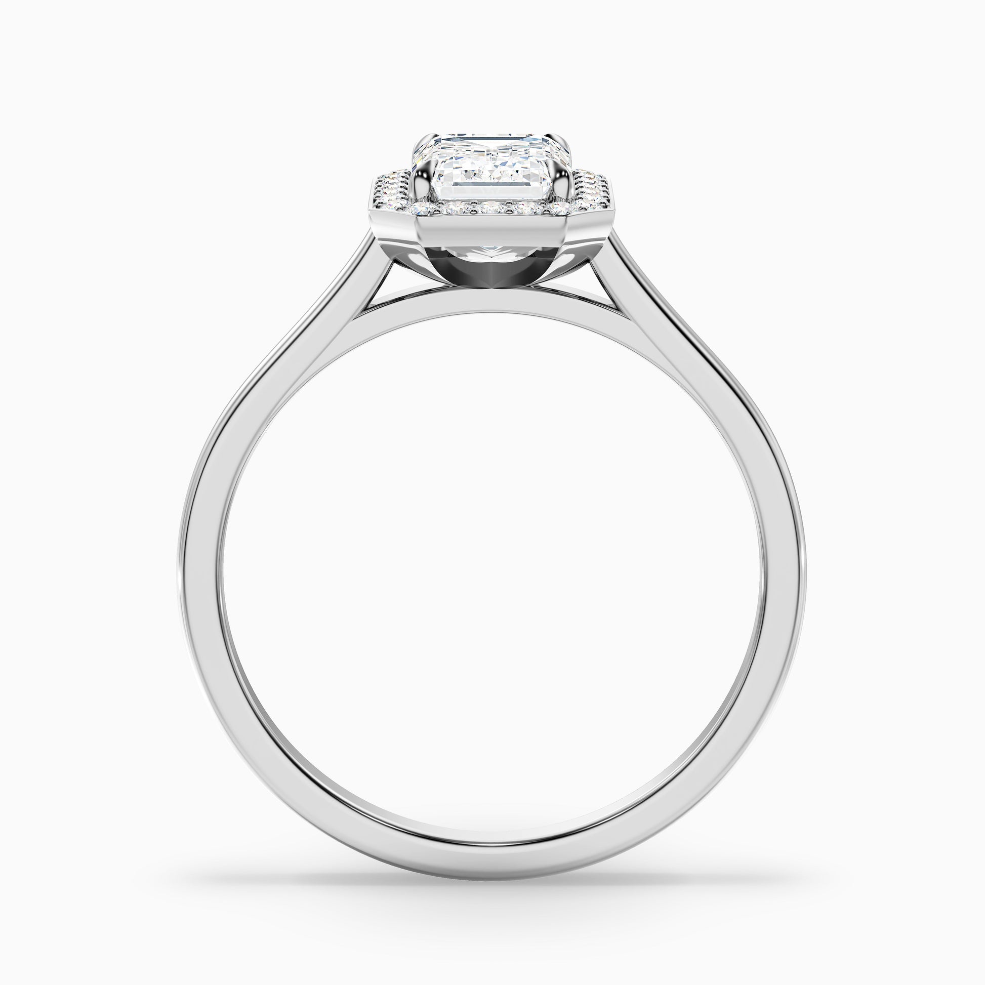 Dazzle with this emerald halo moissanite ring. A stunning emerald cut moissanite is surrounded by a glittering halo, maximizing brilliance. Crafted in 925 silver, platinum, or 10k, 14k, or 18k white, yellow, or rose gold. Available in various carat sizes for a spectacular look.