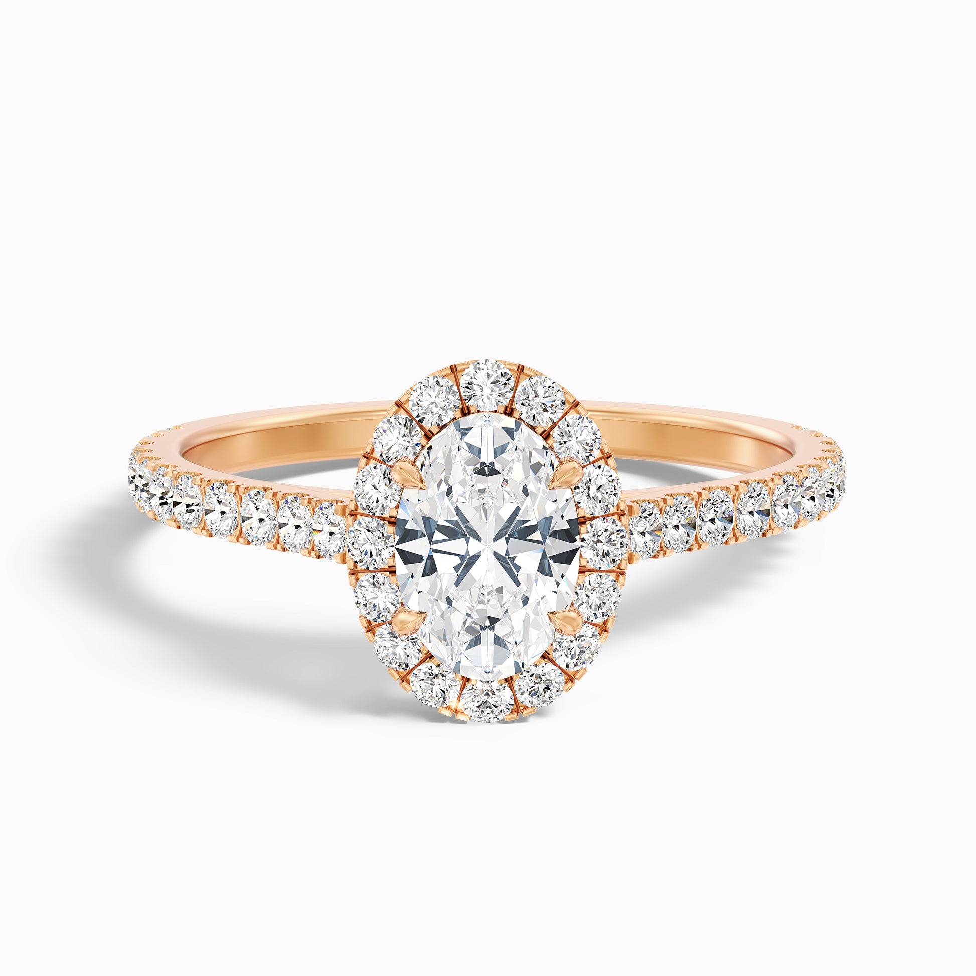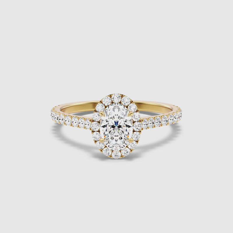 Dazzle with this oval pave halo moissanite ring. A stunning oval moissanite is encircled by a glittering pave halo, maximizing sparkle. Crafted in 925 silver, platinum, or 10k, 14k, or 18k white, yellow, or rose gold. Available in various carat sizes for a truly brilliant ring.