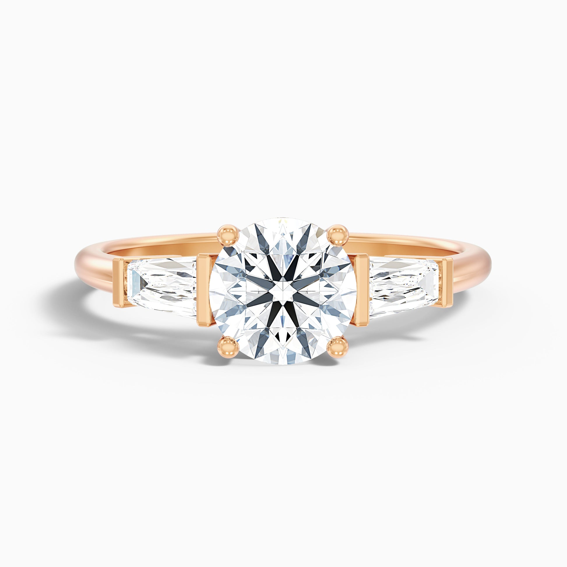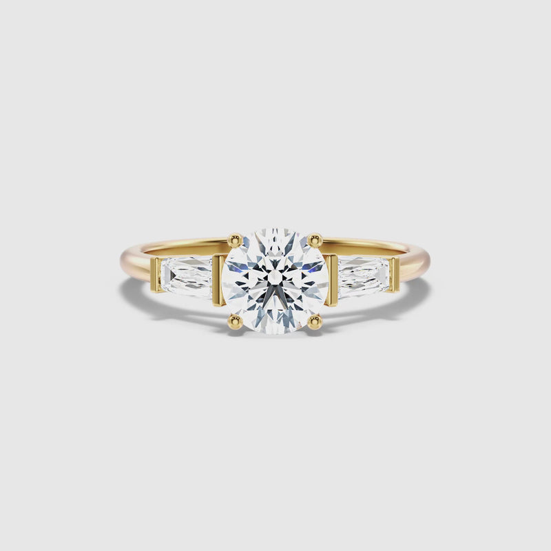 Emilia Round Three Stone With Baguette Moissanite Ring