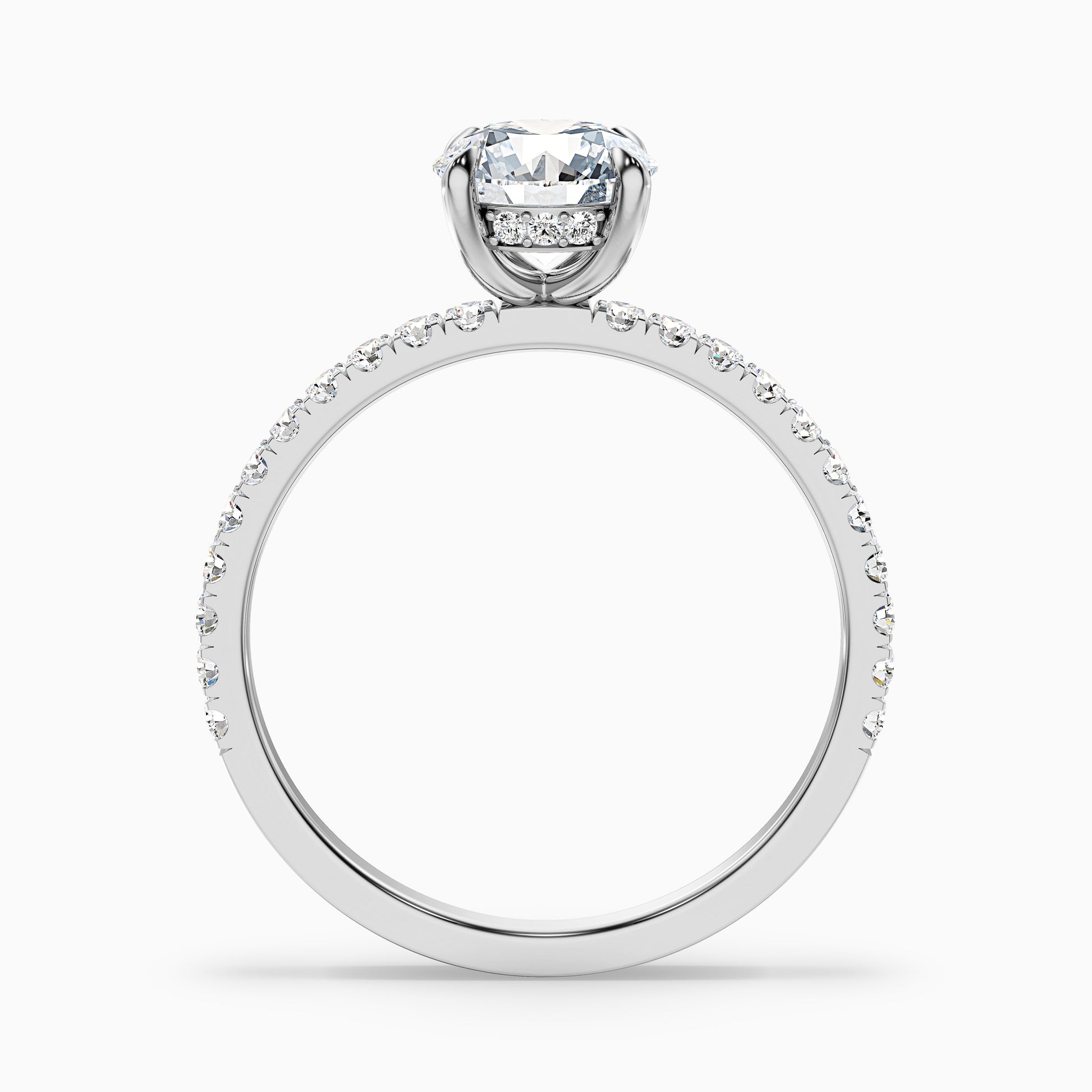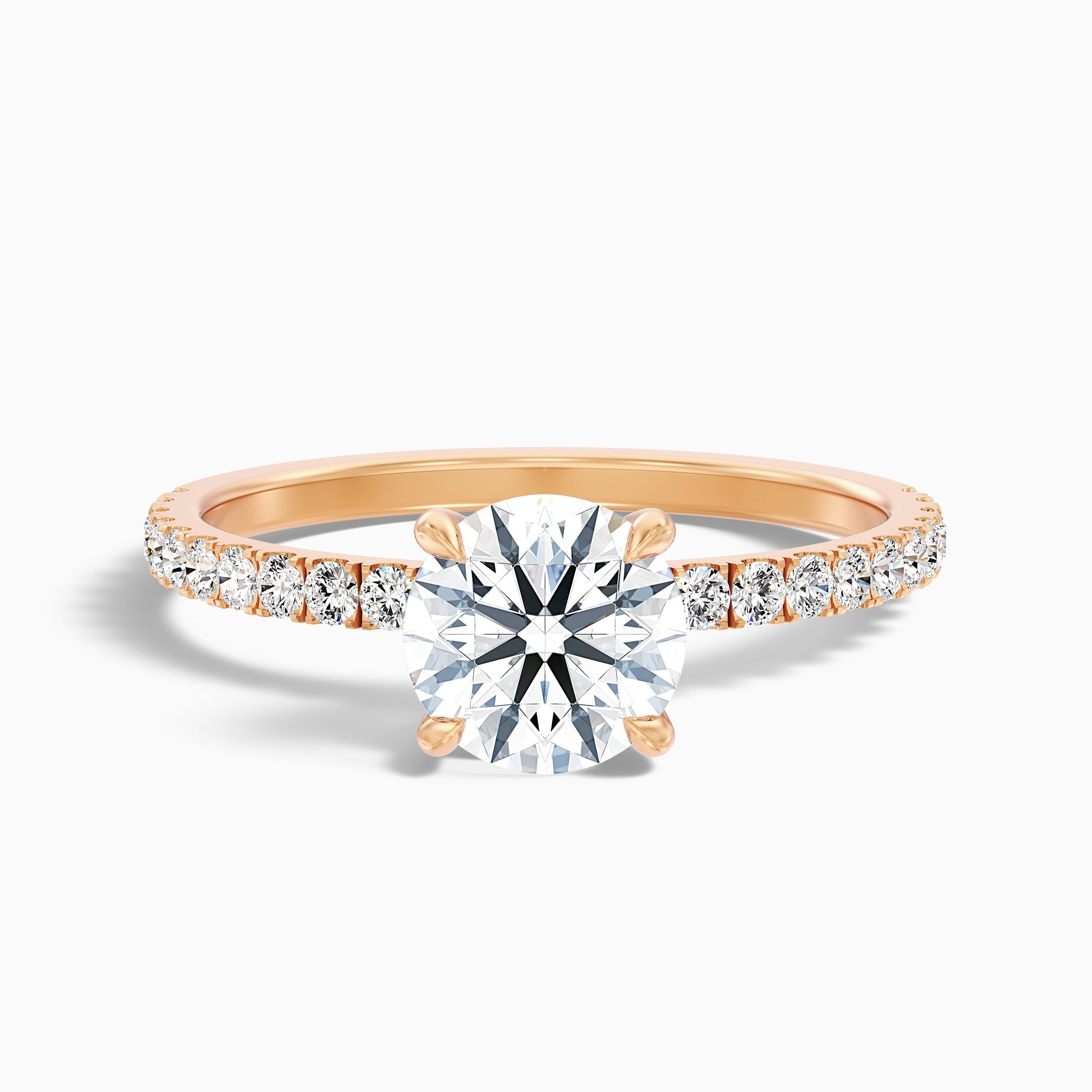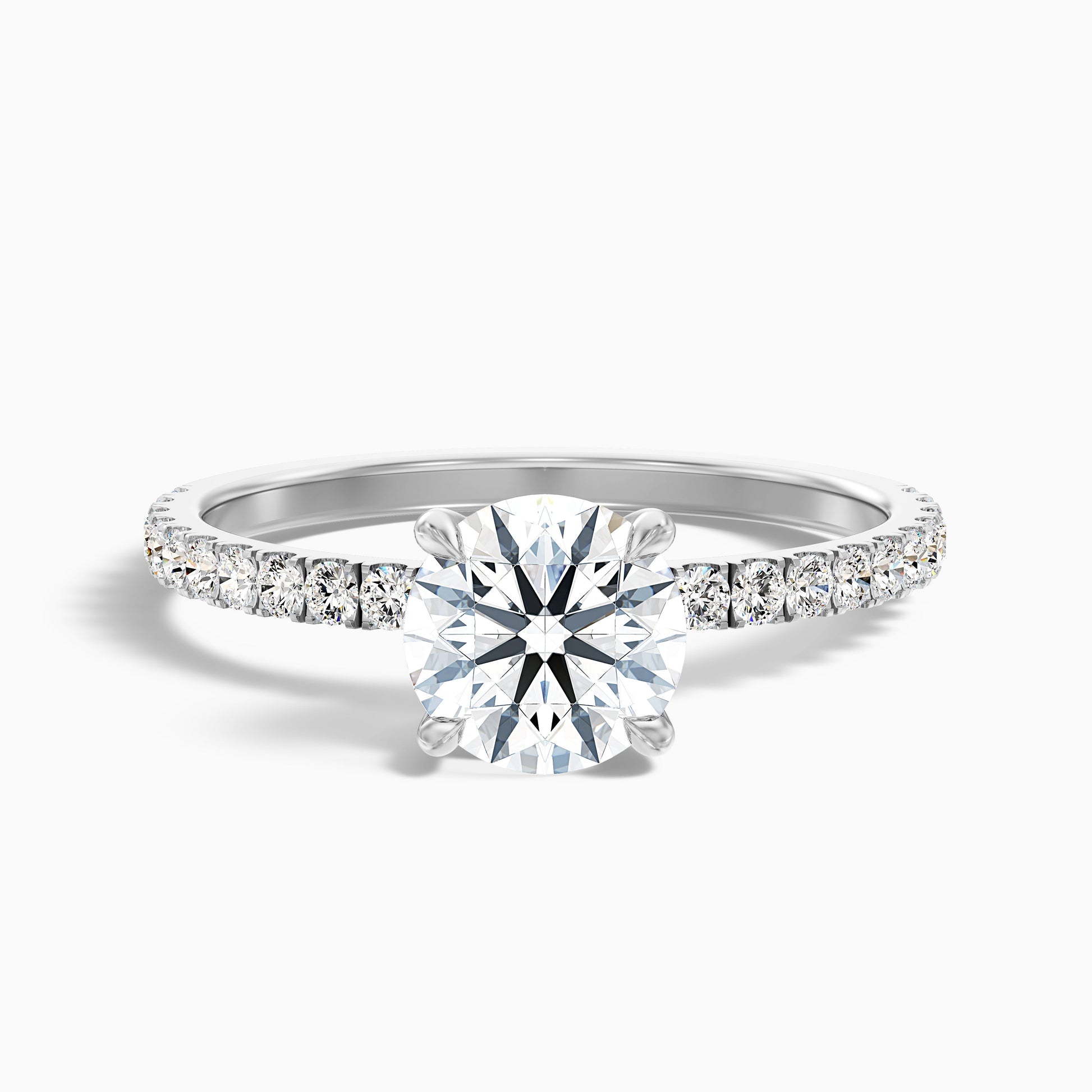 A beautiful round hidden halo moissanite ring. Showcasing a brilliant round moissanite with a delicate hidden halo adding extra sparkle from below. Crafted in 925 silver, platinum, or 10k, 14k, or 18k white, yellow, or rose gold. Available in various carat sizes for a sophisticated look.
