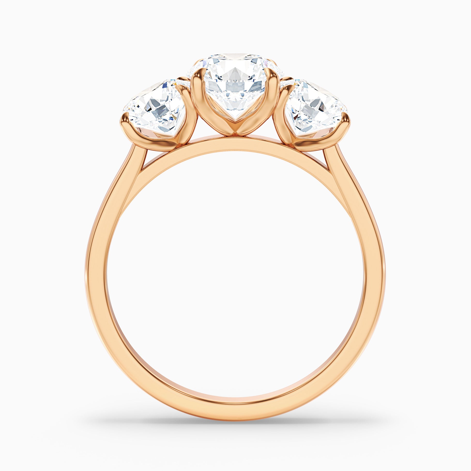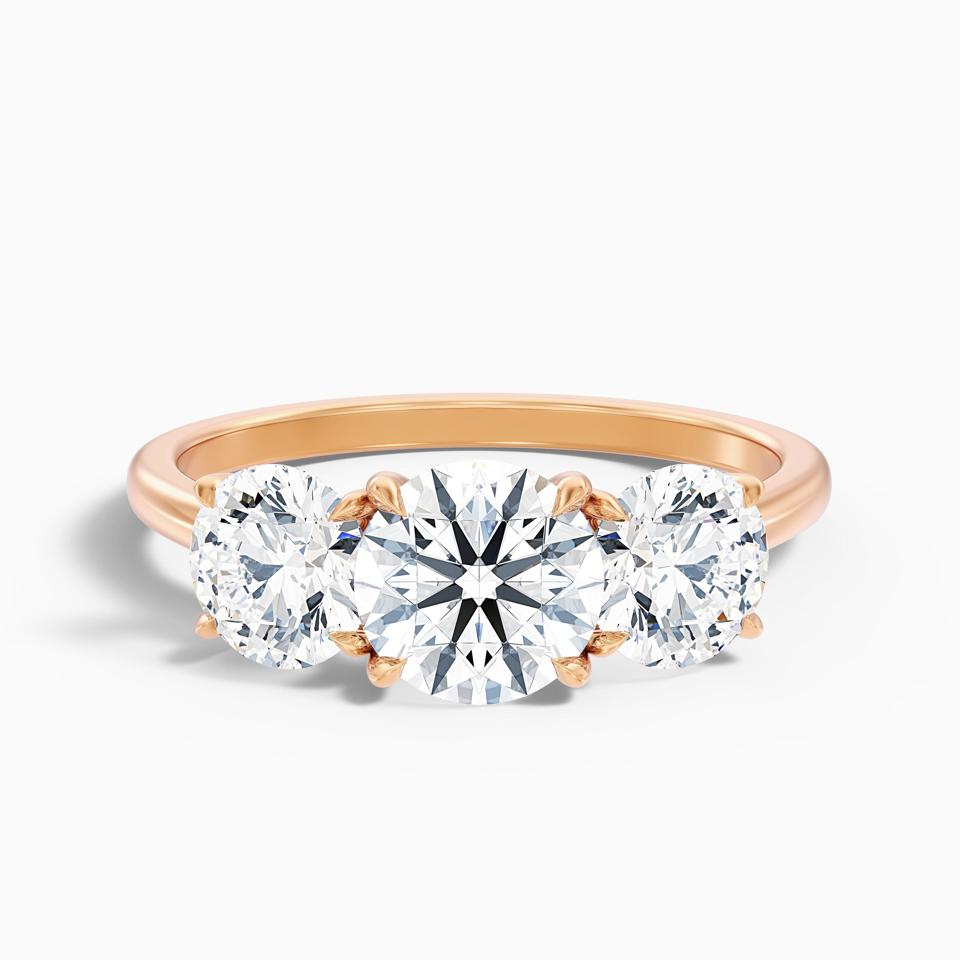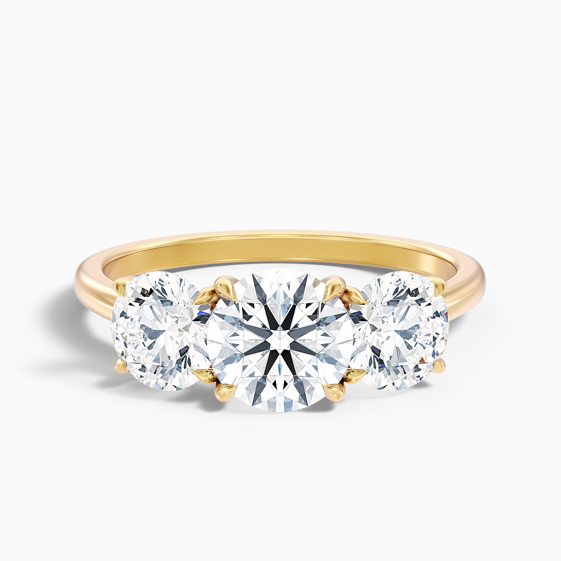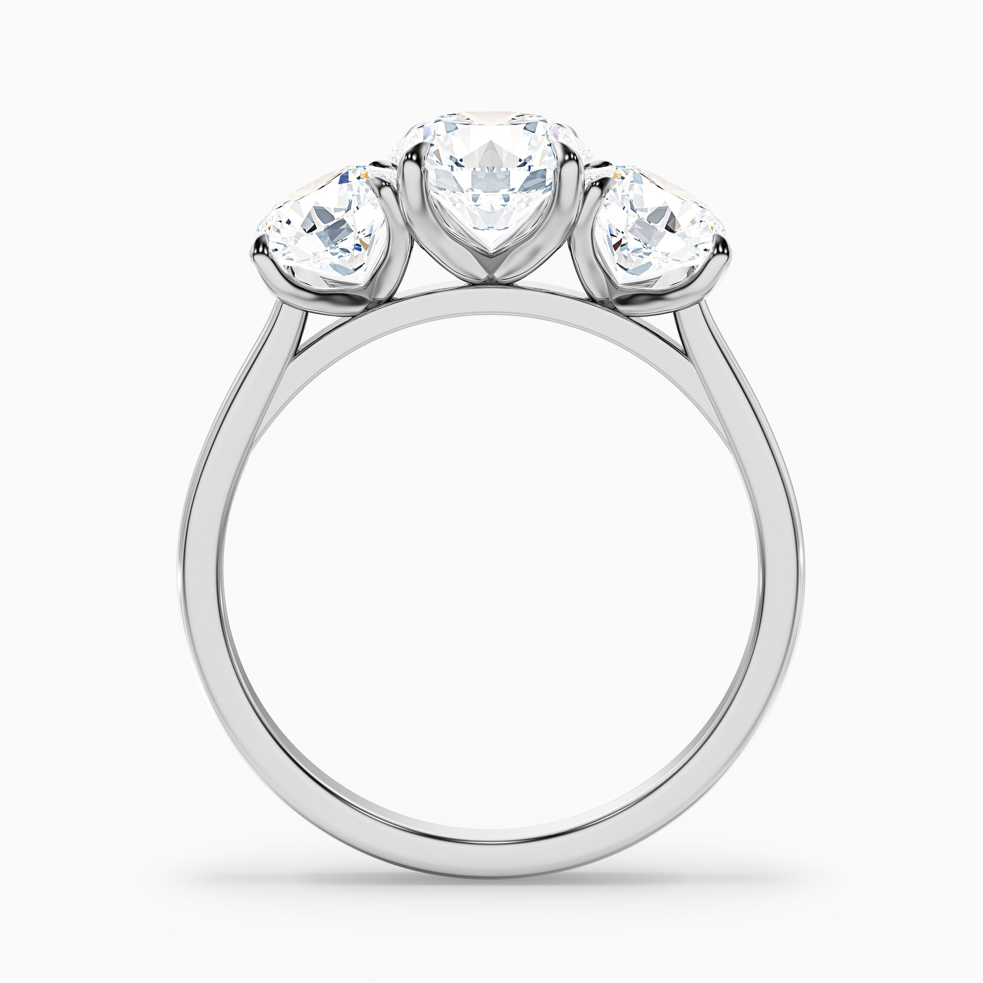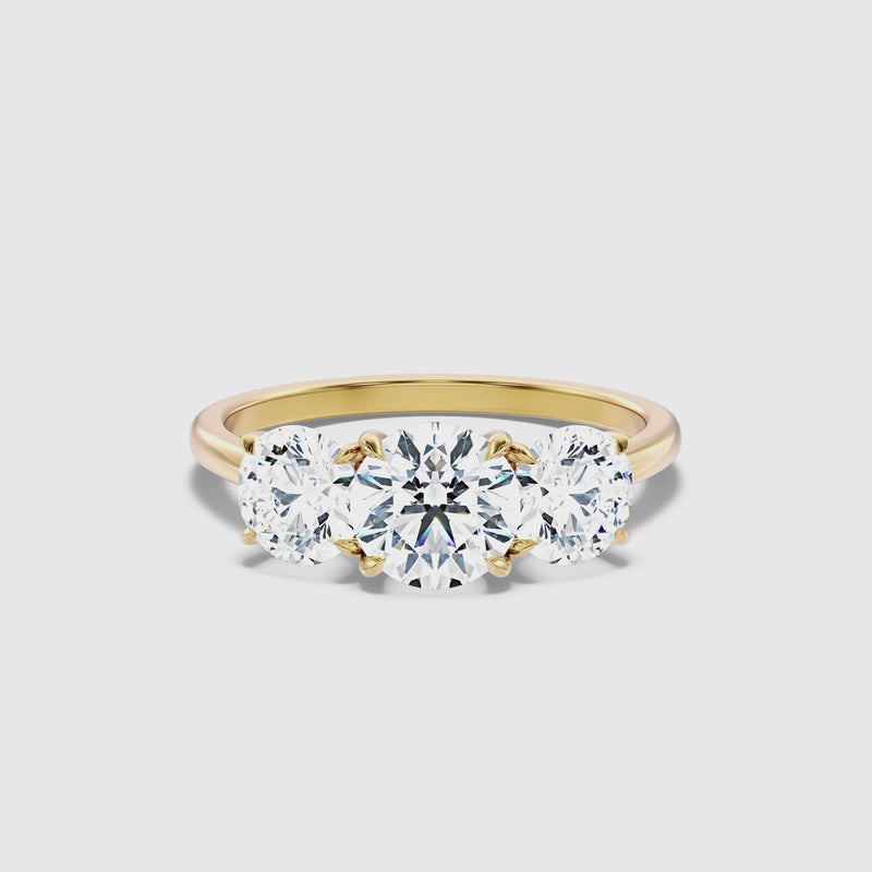 Symbolize your journey with this round three stone moissanite engagement ring. A central round moissanite is beautifully flanked by two sparkling side stones. Expertly crafted in 925 silver, platinum, or 10k, 14k, or 18k white, yellow, or rose gold. Available in various carat sizes for a meaningful ring.