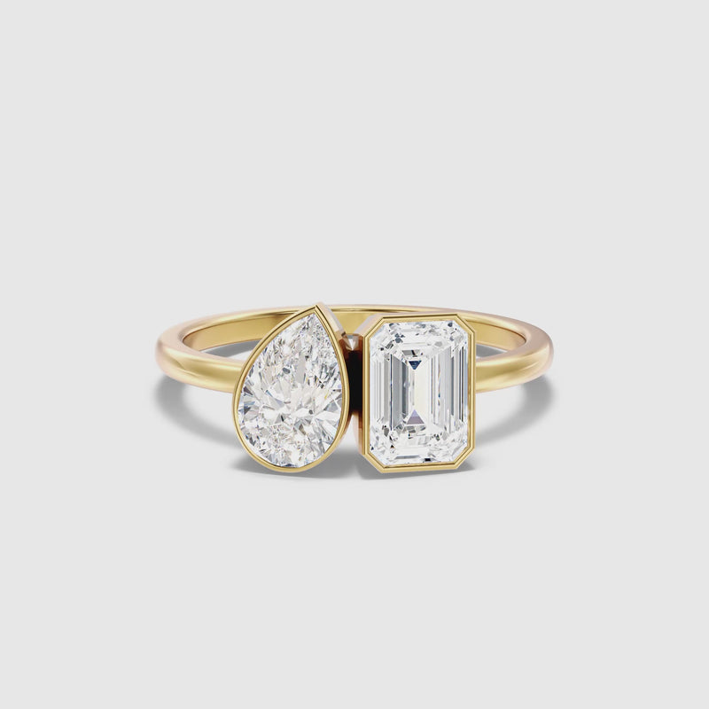Helena Toi Et Moi Moissanite Ring With Pear And Emerald Cut Diamonds
