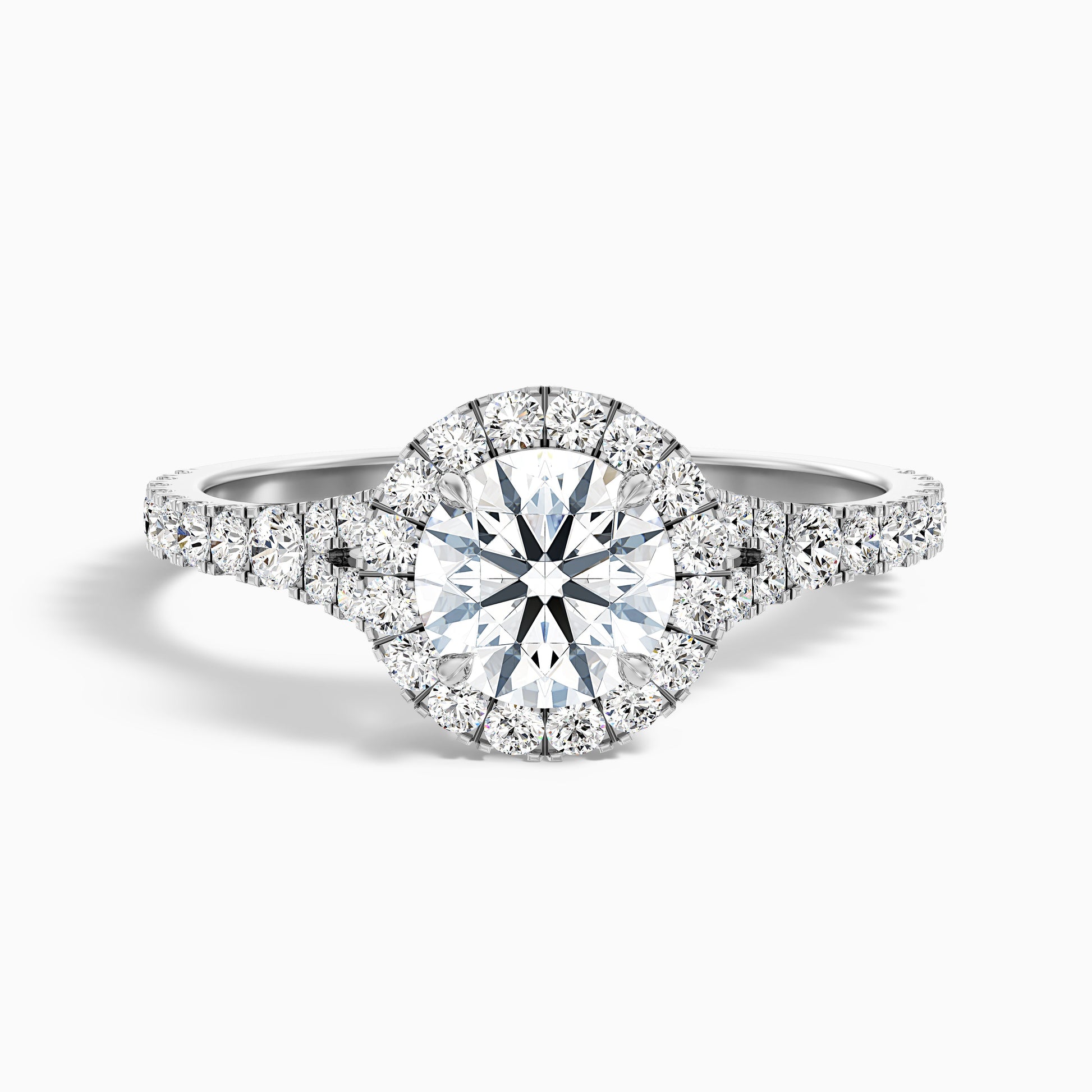Katerina Round Cut Halo Split Shank Moissanite Ring