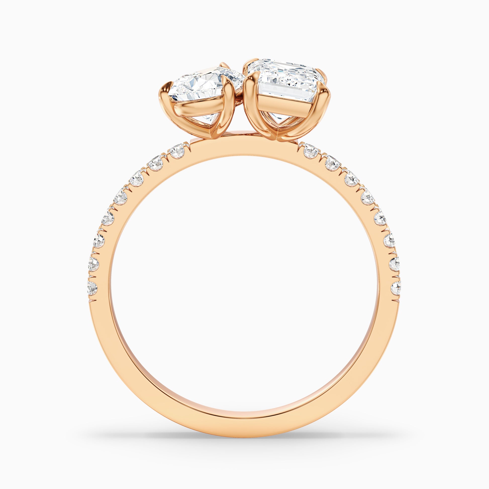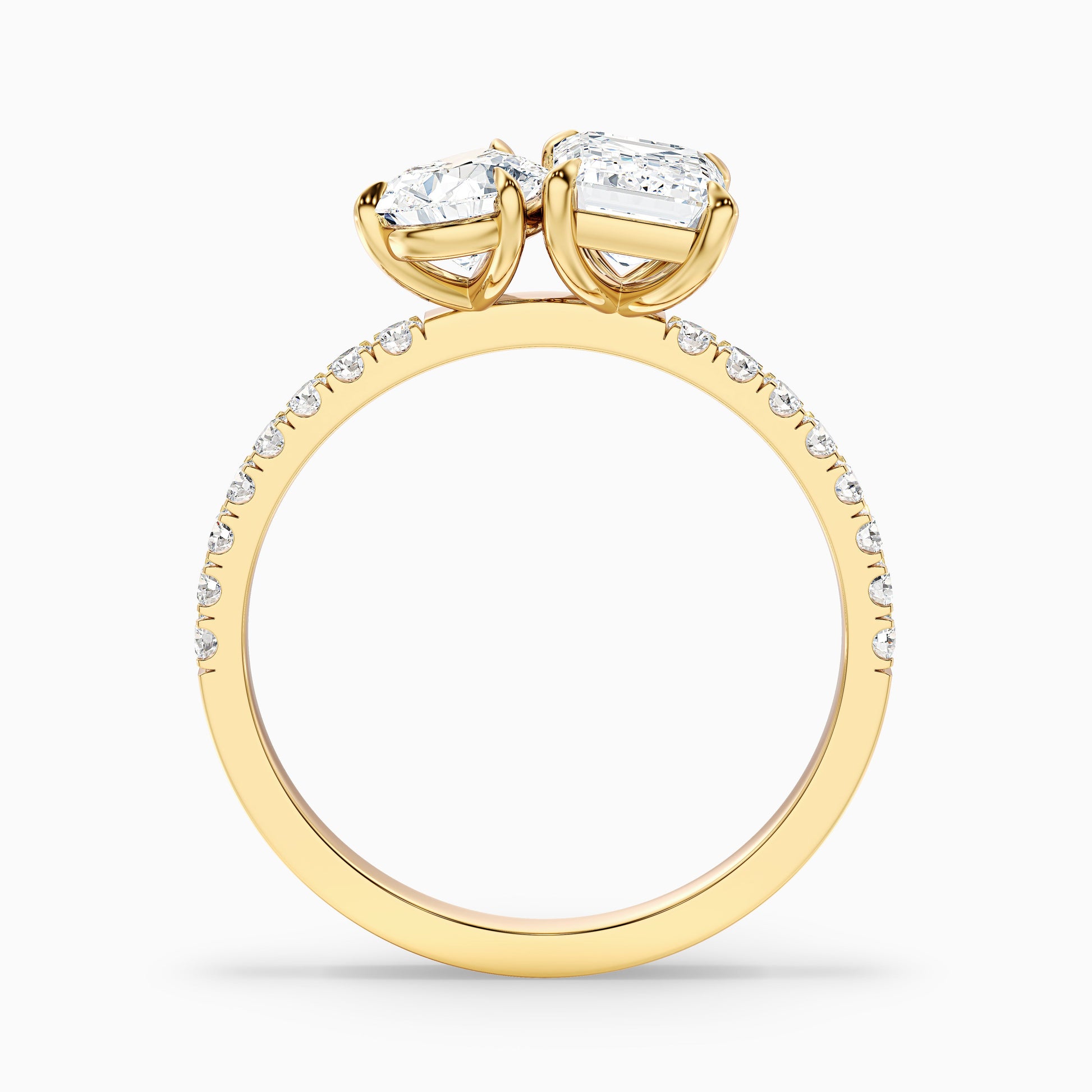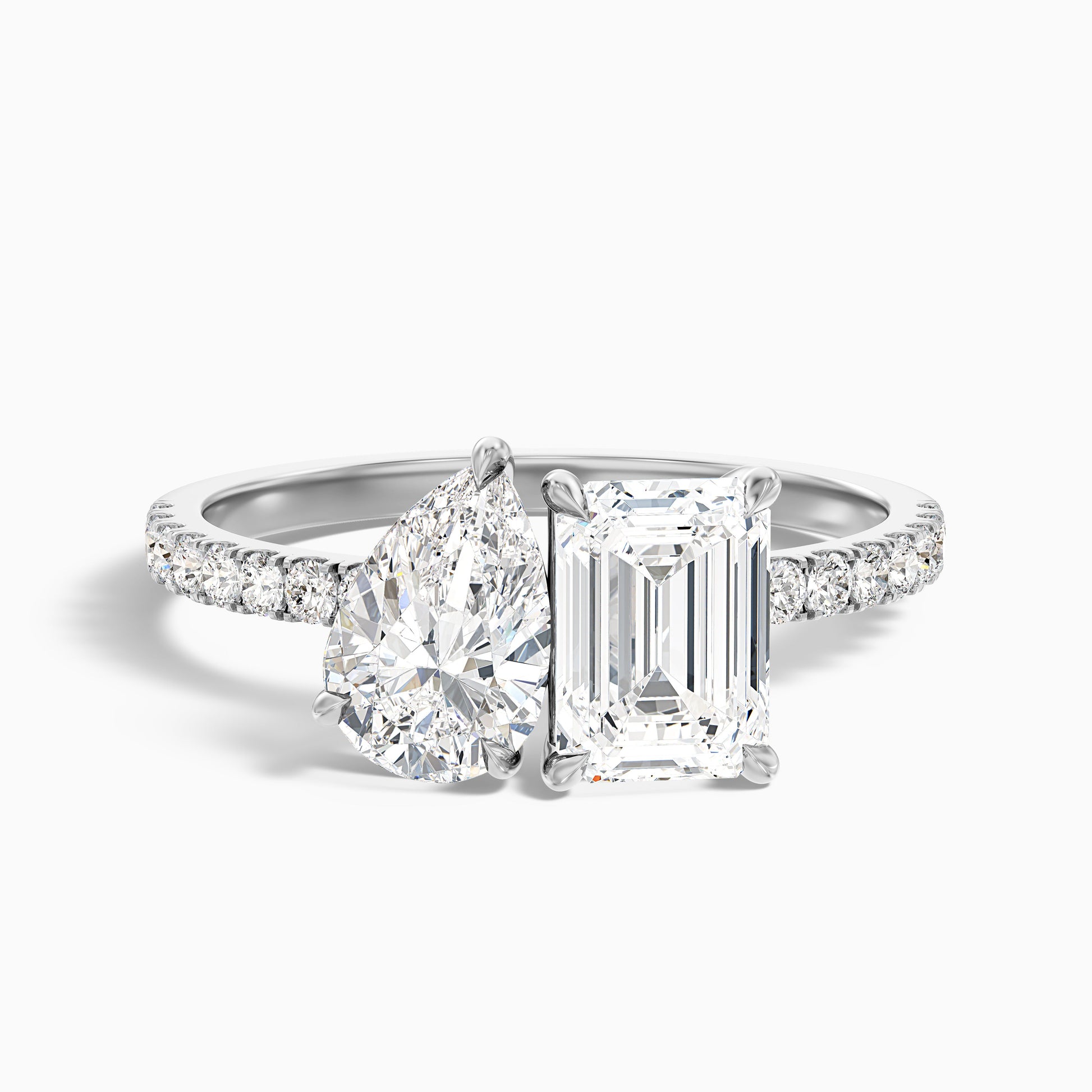 The Kendra Toi Et Moi pave moissanite diamond ring features a striking pair of pear and emerald-cut moissanites, elegantly aligned and surrounded by a shimmering pave halo for extra sparkle. Crafted in 10k, 14k, or 18k gold, sterling silver, and platinum, this ring blends bold geometry with romantic brilliance.