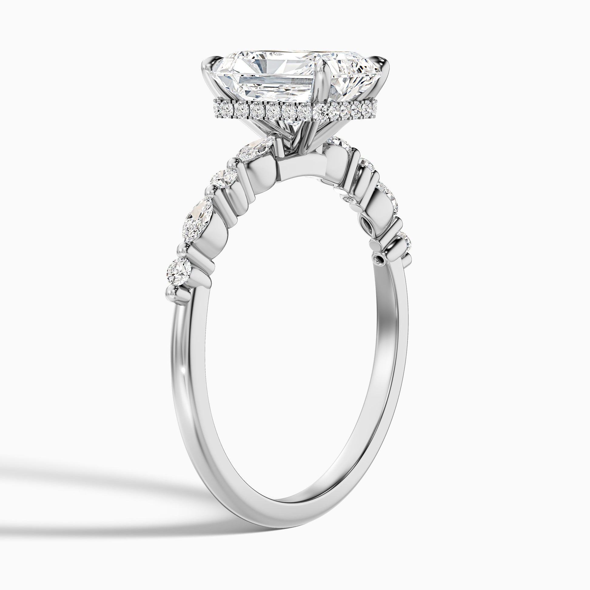 Kinslee Radiant Cut Hidden Halo Side Stone Lab Grown Diamond Ring