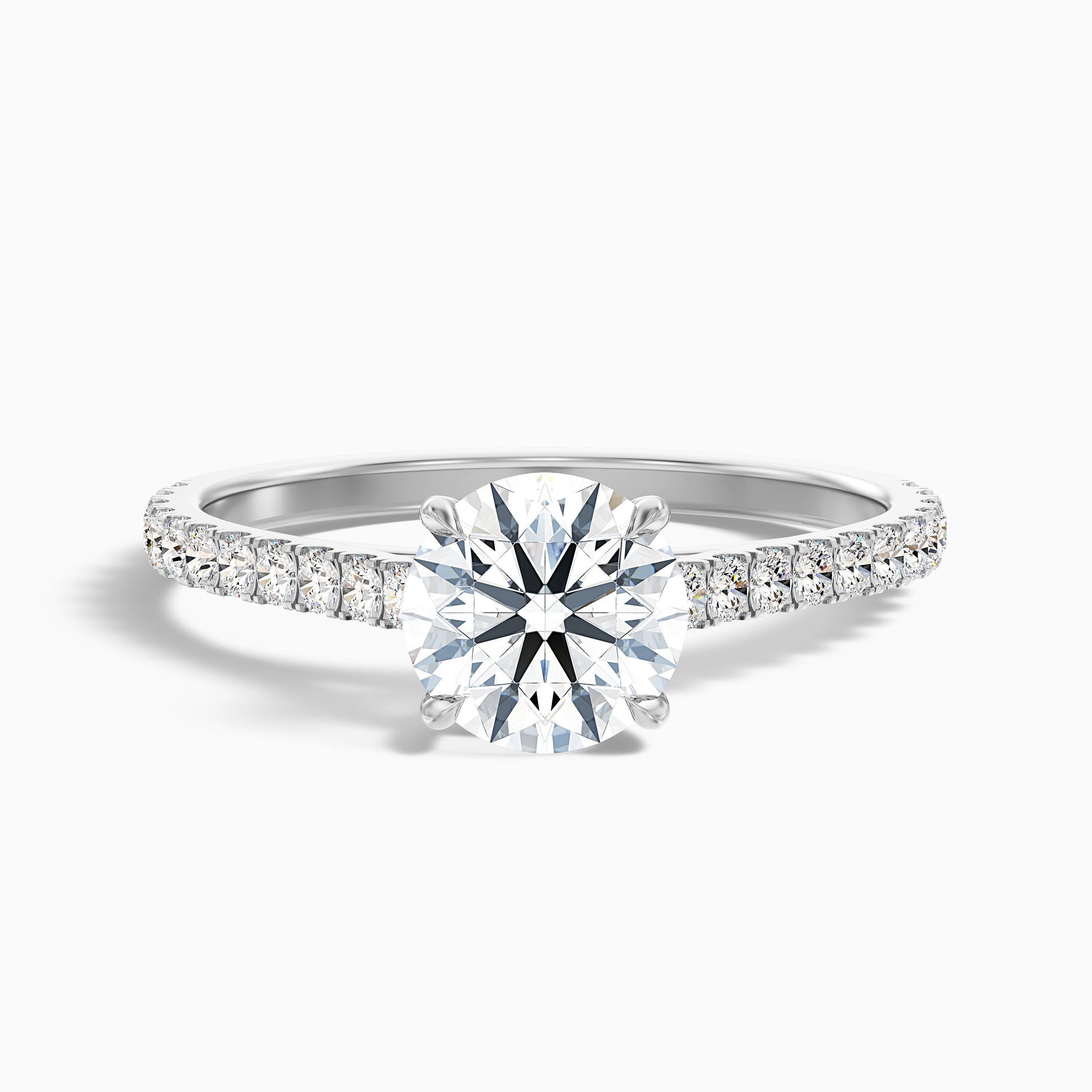 A beautiful round side stone lab grown diamond ring. This design features a brilliant round lab grown diamond complemented by sparkling side stones. Available in 925 silver, or 10k, 14k, or 18k white, yellow, or rose gold. Choose from various carat sizes for a ring that shines.