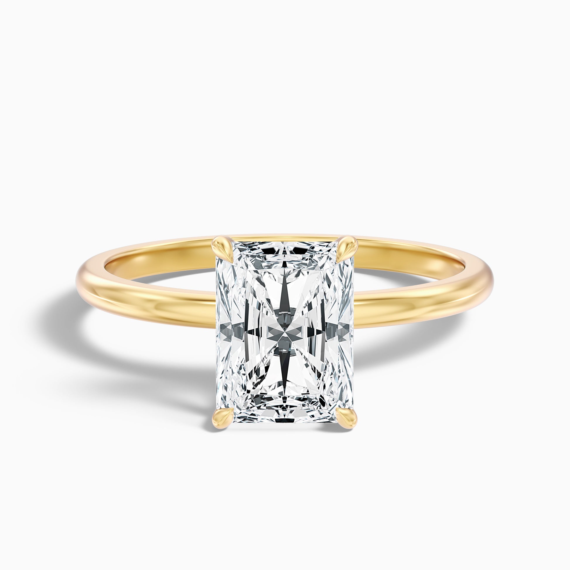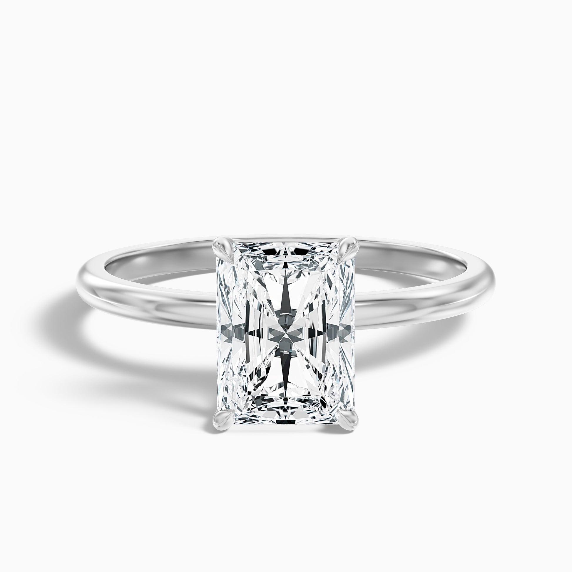 This radiant cut solitaire lab grown diamond ring offers brilliant sparkle. Features a stunning radiant cut lab grown diamond in a simple, beautiful solitaire setting. Available in 925 silver, platinum, or luxurious 10k, 14k, 18k white, yellow, rose gold. Choose from various carat sizes.