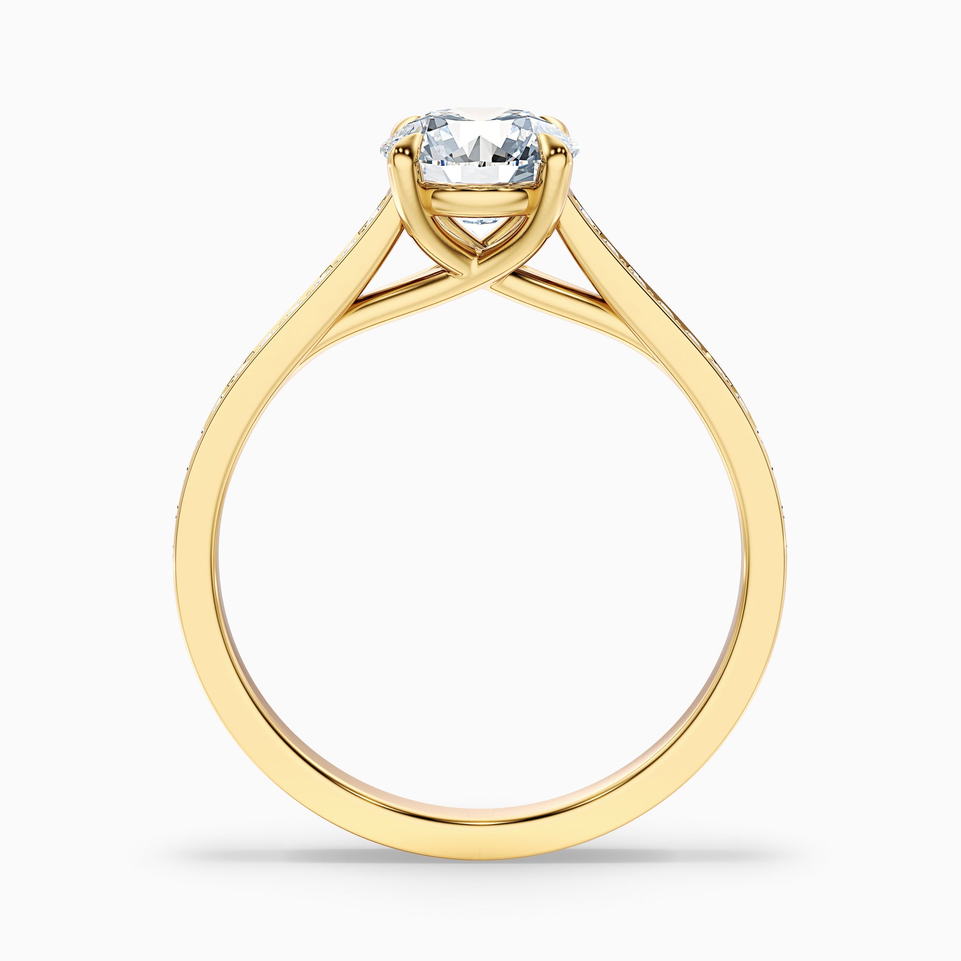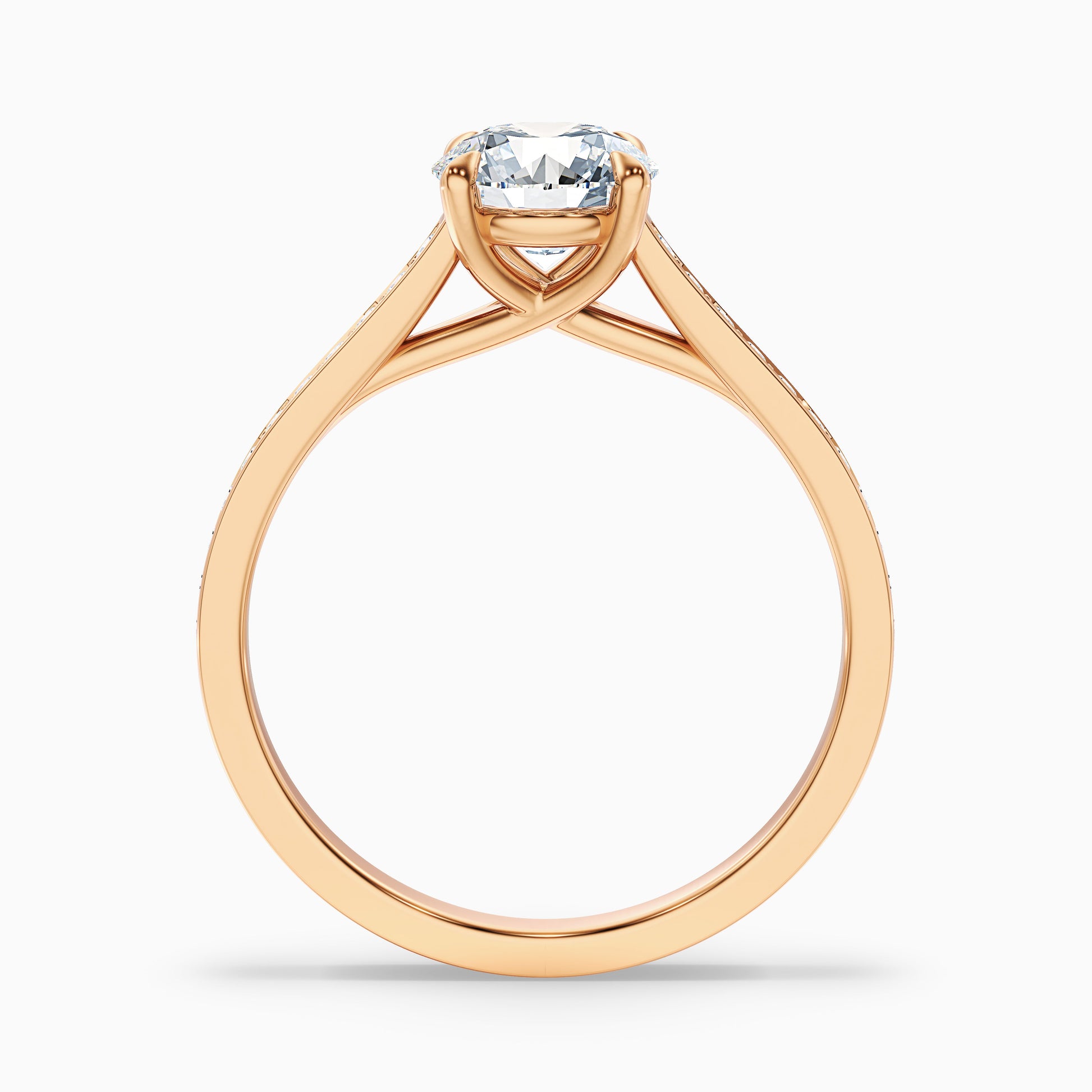 This round side stone channel set moissanite engagement ring offers brilliant sparkle. Features a magnificent round moissanite with channel set side stones along the band. Crafted in 925 silver, platinum, or 10k, 14k, or 18k white, yellow, or rose gold. Available in various carat sizes for a radiant proposal.