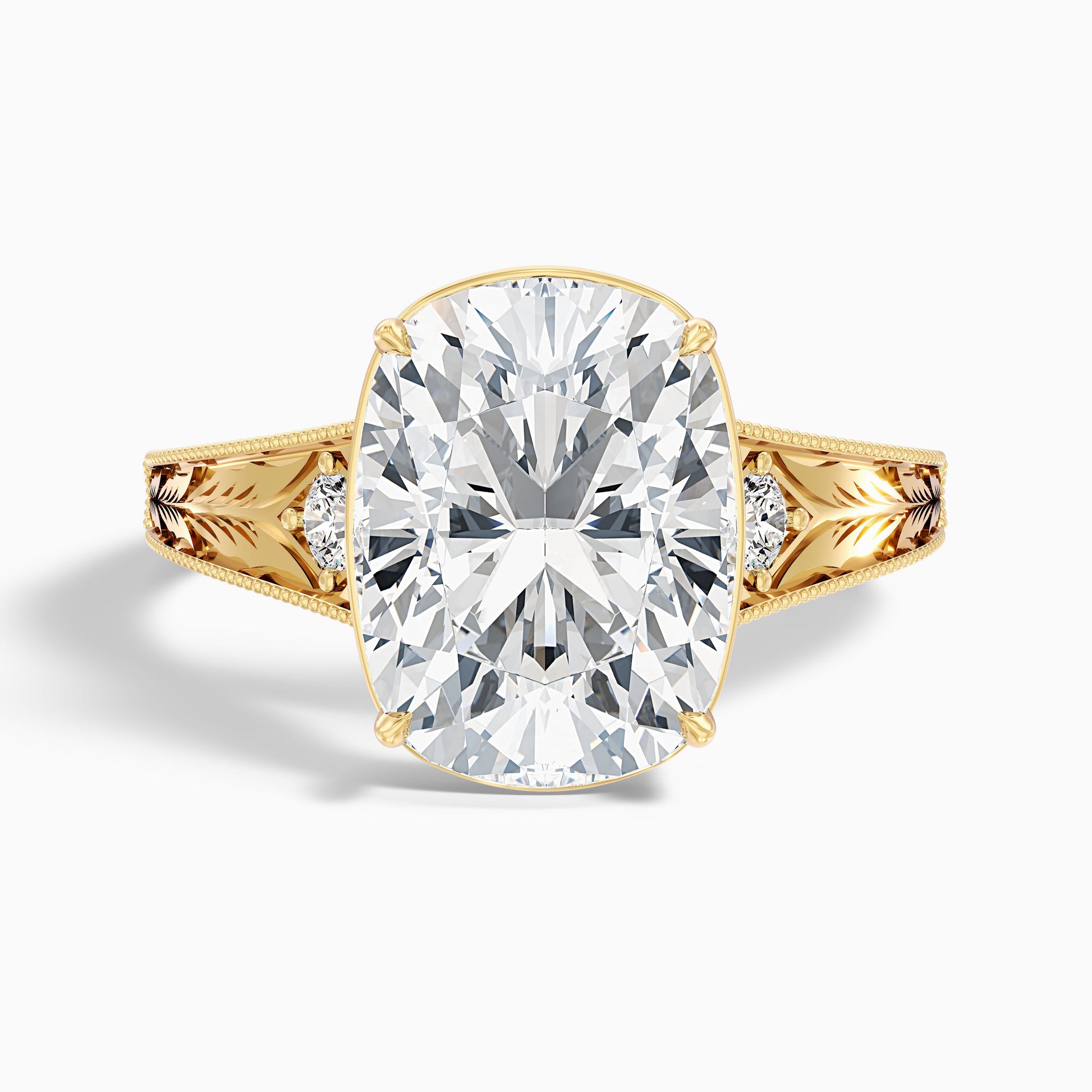 The Taylor elongated old mine cushion cut lab grown diamond ring features a vintage-inspired center stone with softly rounded corners and a deep pavilion for exceptional fire and warmth. Crafted in 10k, 14k, or 18k gold, sterling silver, and platinum, this design captures timeless charm with a romantic, antique feel.