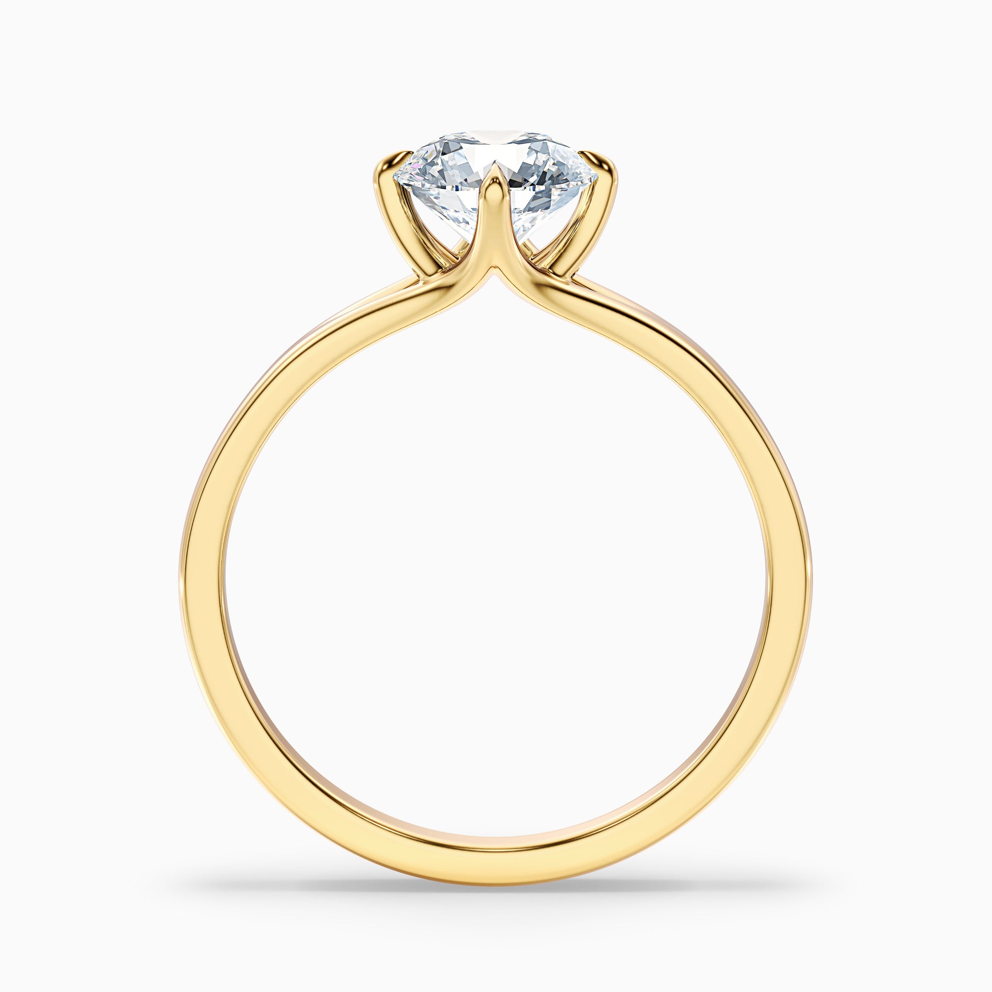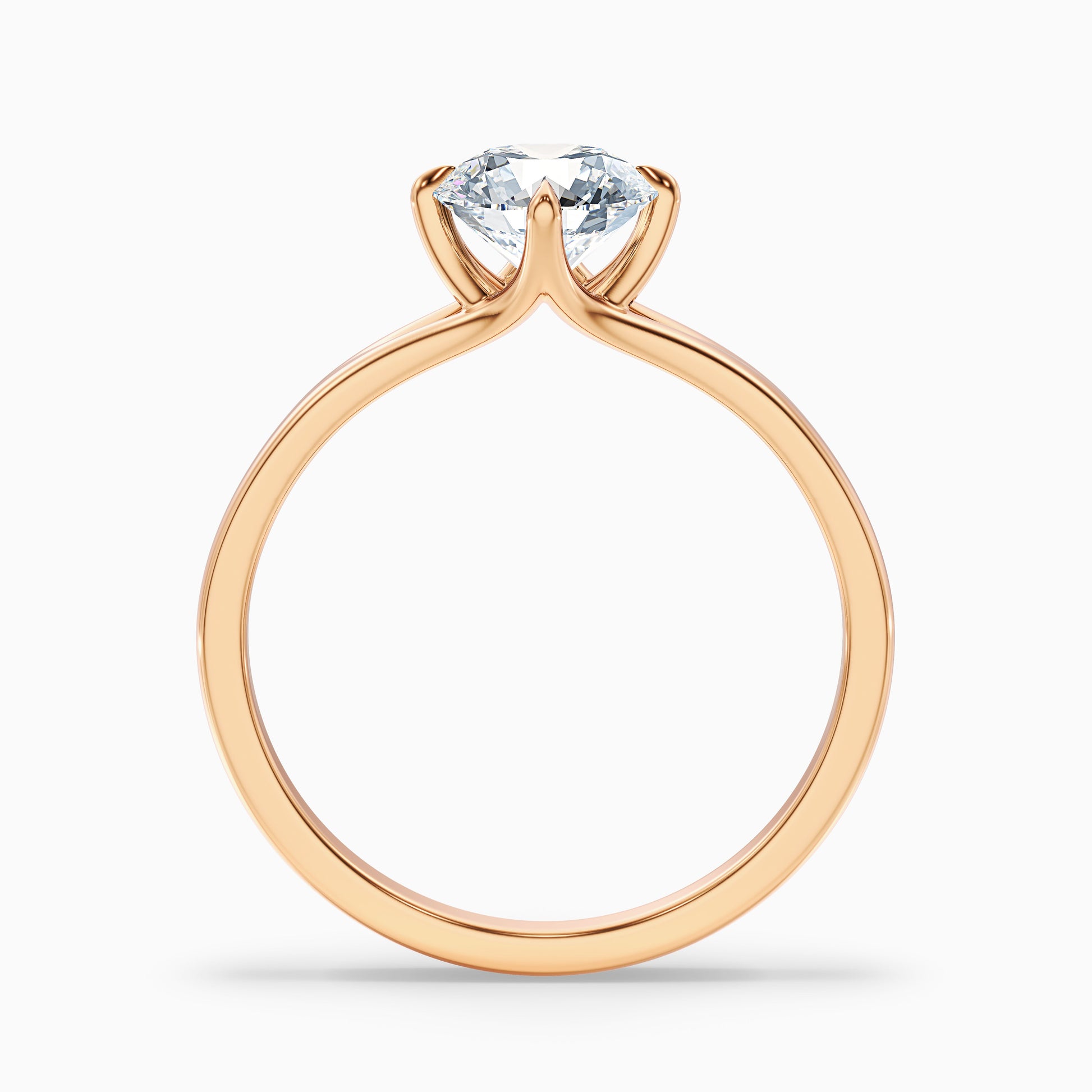 A unique round split shank solitaire moissanite ring. Features a brilliant round moissanite atop a distinctive split band. Crafted in 925 silver, platinum, or 10k, 14k, or 18k white, yellow, or rose gold. Available in various carat sizes for a modern design.