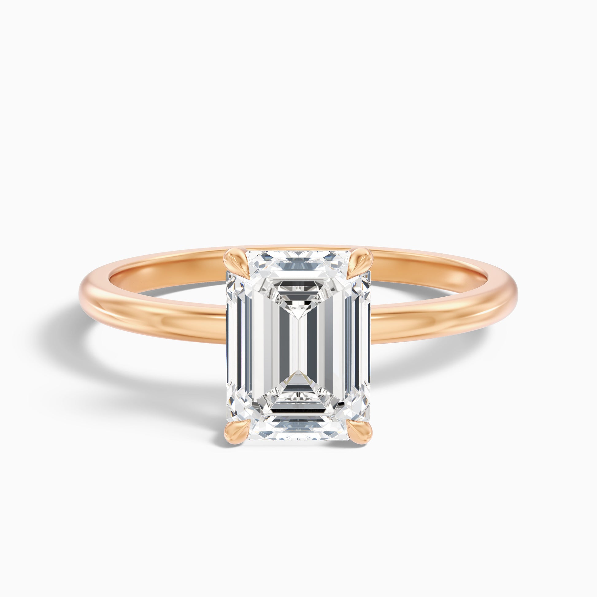 This emerald cut hidden halo moissanite ring offers sophisticated detail. Features a stunning emerald cut moissanite with a subtle hidden halo beneath. Available in 925 silver, platinum, or 10k, 14k, or 18k white, yellow, or rose gold. Choose from various carat sizes for a ring with understated sparkle.