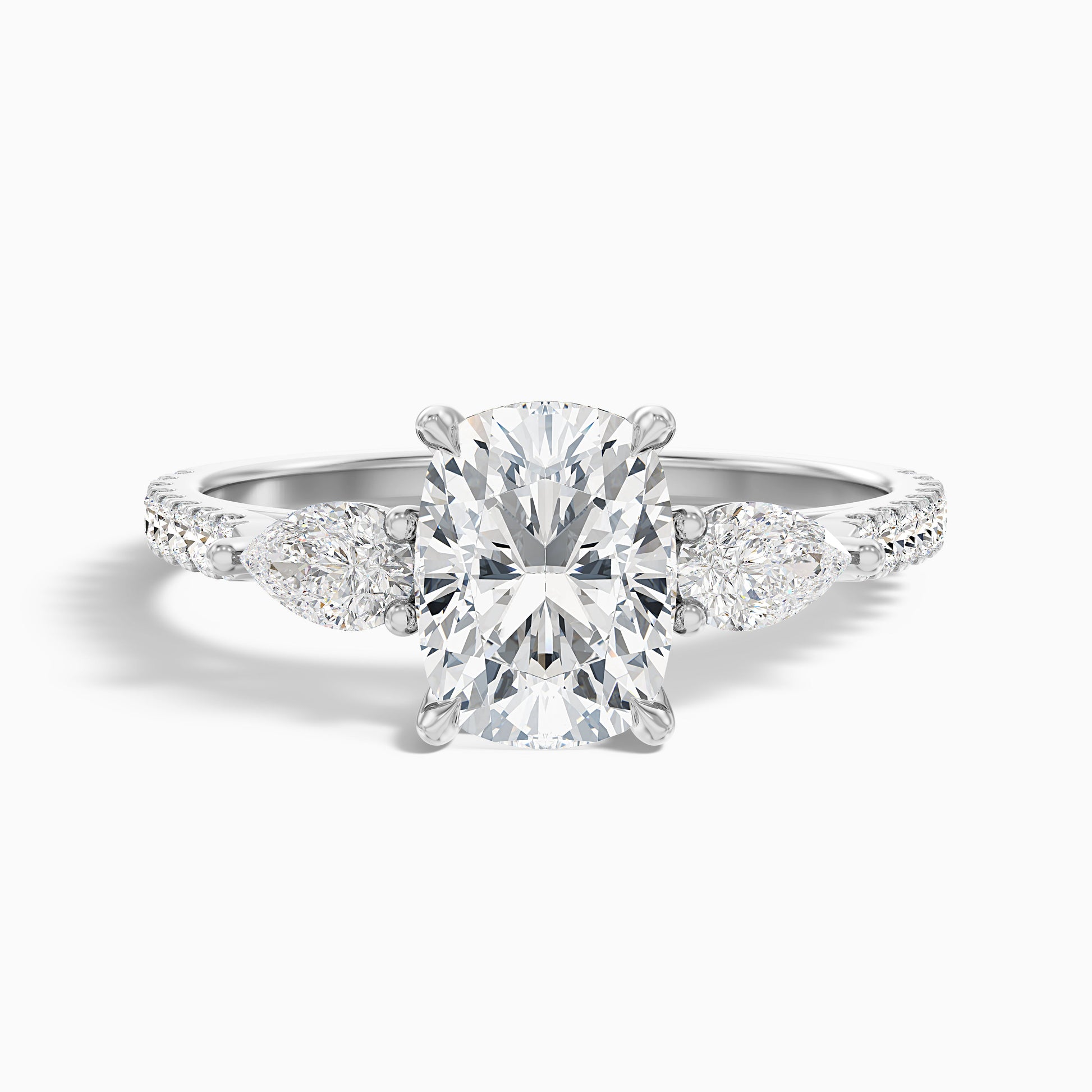 Zoe Elongated Cushion Cut Three Stone Pave Lab Grown Diamond Ring