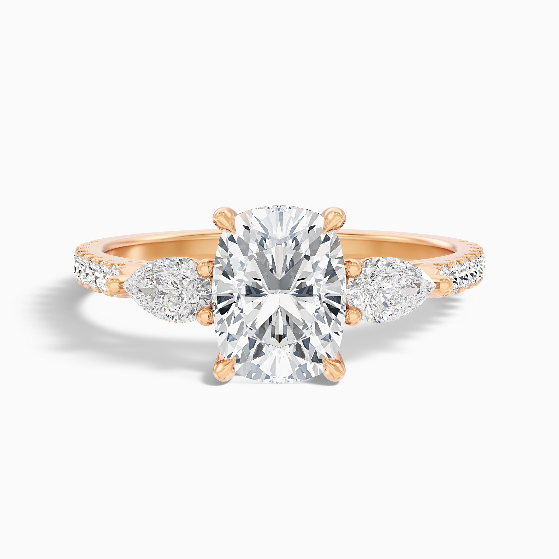 Zoe Elongated Cushion Cut Three Stone Pave Moissanite Diamond Ring